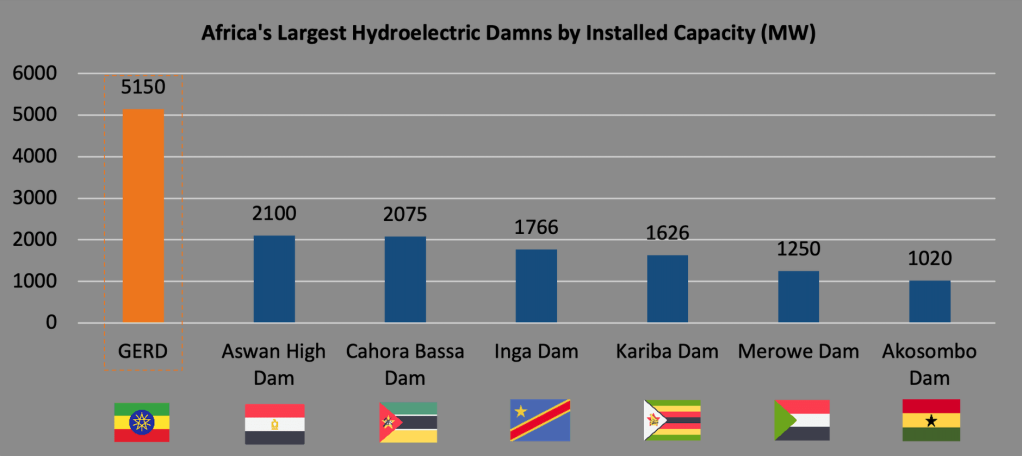 Ethiopia’s GERD, standing as Africa’s largest hydroelectric dam, boasts an installed capacity of 5,150 megawatts, symbolising the continent’s growing drive for energy independence.