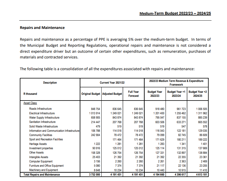 Even so, if Johannesburg underspent on its repair and maintenance budgets, it is highly unlikely that it would have spent less than cities like Ekurhuleni, Mangaung and Buffalo City.