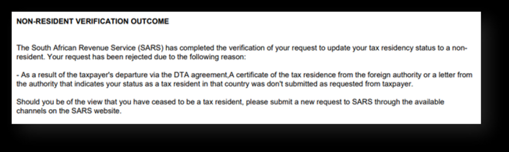 Procedural Overhaul of Tax Non-Residency on Sars eFiling