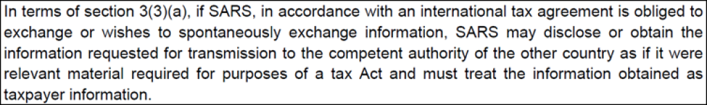 Section 3(3) of the TAA both empowers and obliges Sars, if in accordance with an “international tax agreement” to exchange information: