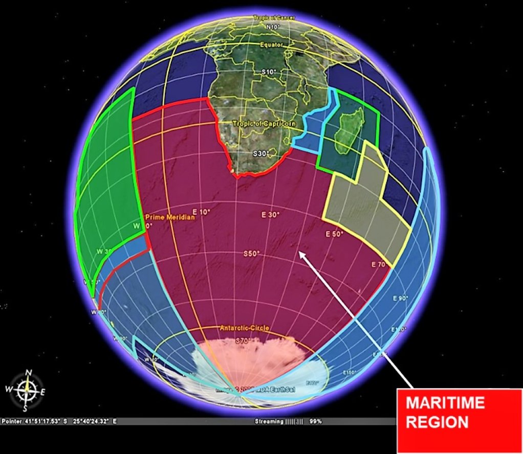 South Africa’s search and rescue area in the Southern Ocean (in red)