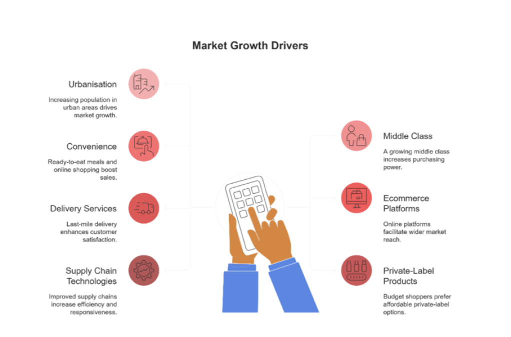 Another key factor is the expansion of private-label products, which appeal to budget-conscious shoppers. At the same time, investment in supply chain technologies is improving efficiency, helping retailers and wholesalers respond to demand fluctuations more effectively.