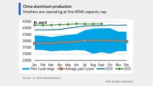 Provided by Bank of America Global Research was an outlook for metals, particularly copper and aluminium, in relation to global economic trends and defence spending, and those participating in the webinar heard that the Chinese government has repeatedly been called on by the Chinese aluminium industry in the past decade to effectively bail the smelters out.